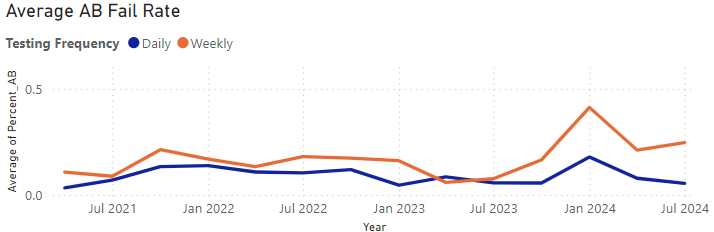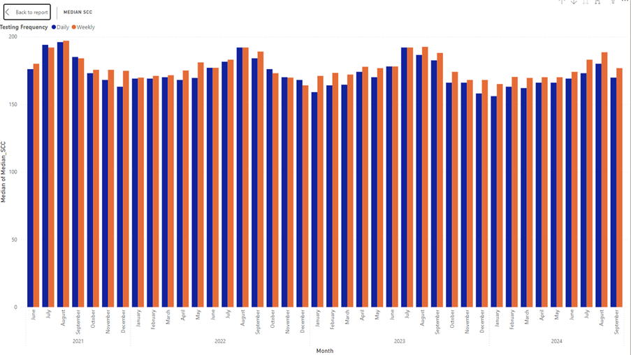 As of October 2024, approximately 30% of processors (which equates to almost one fifth of GB farms) opt to test every collection using NML’s standard payment suite. Not only does this contribute to less fail events, but the knock on effect of warranty rejections can also be significantly impacted, indeed, one processor saw a fall of 30% in warranty rejection costs in the year following the introduction of daily testing.