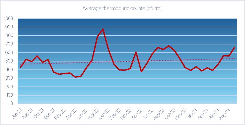 It was good to have a strong turnout at our Autumn client meeting held at Taunton Rugby Club on October 24th. We had a full agenda with a focus on the use of data to provide assurance in the dairy supply chain. At the start of the meeting we reviewed aggregate data for NMR and NML, showing positive progress in terms of most test parameters (fat, protein, bactoscan, SCC’s) but concerns were raised regarding a slight elevation in AB fail rates and we are also seeing a gradual rise in average thermoduric counts.