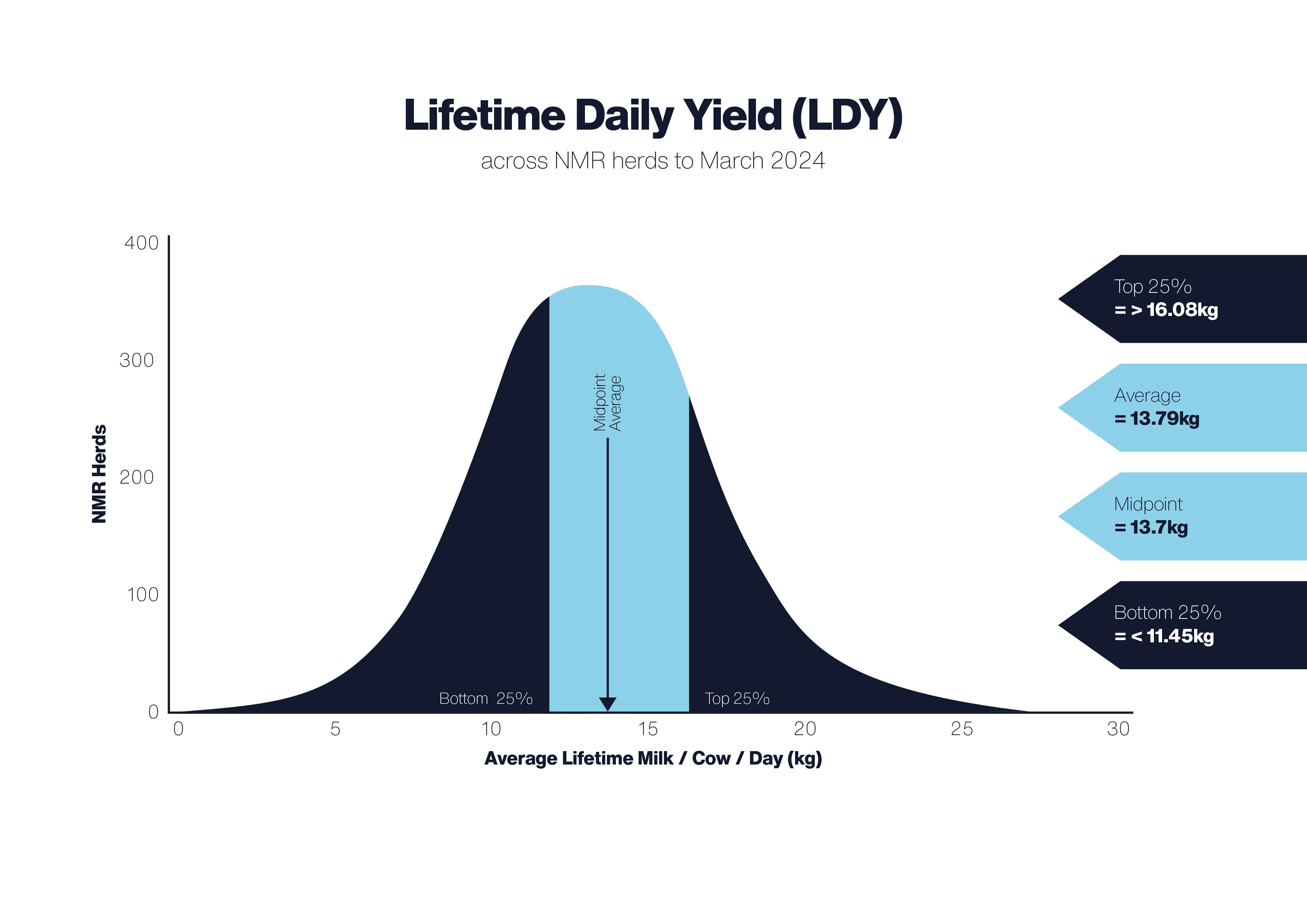 The bell curves below illustrate the results seen in NMR recorded herds. These insights are only available when you milk record.